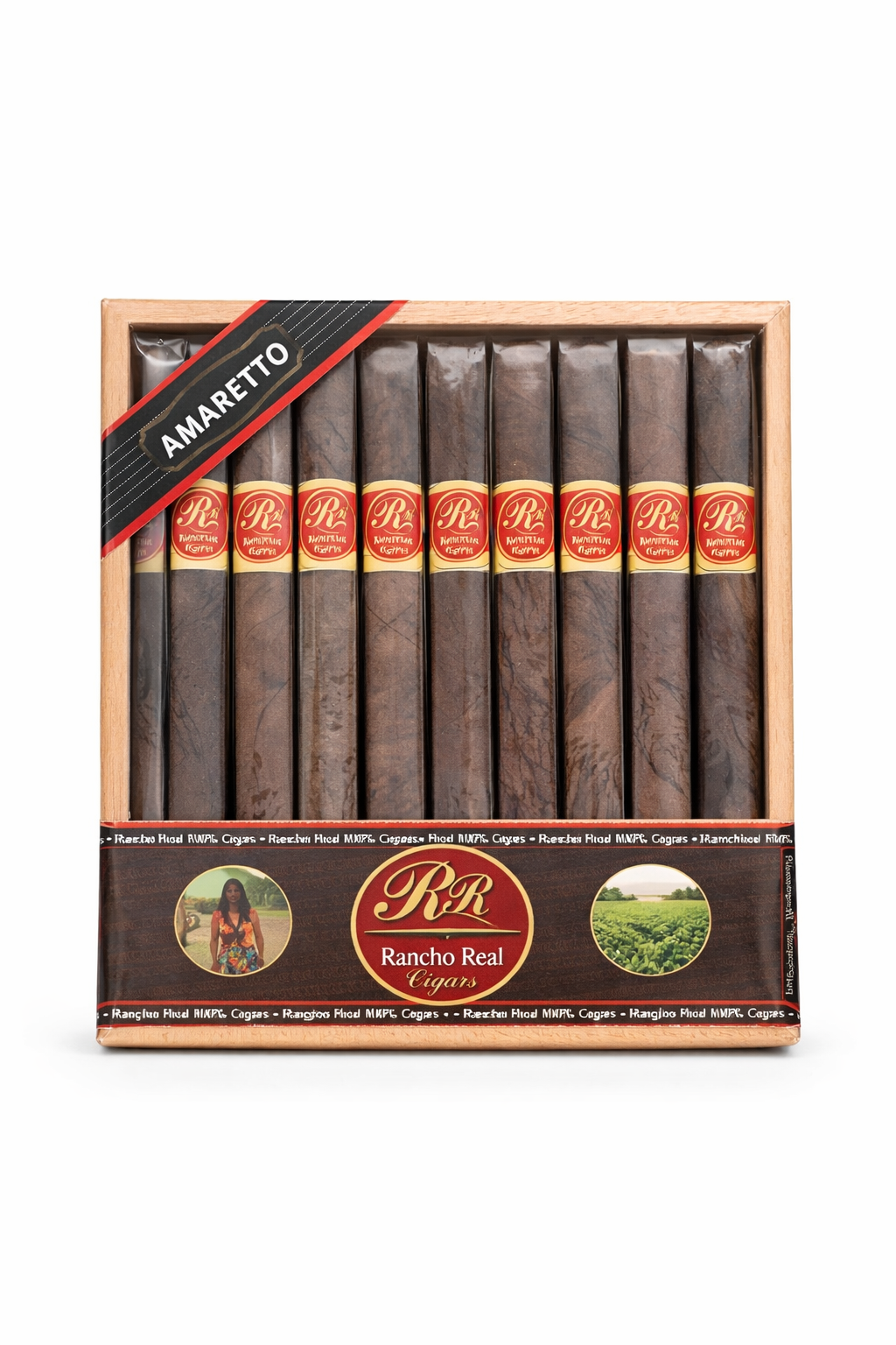 Rancho Real Amaretto to cygaro o charakterze deserowym – aromatyczne, eleganckie i wyjątkowo przyjemne w paleniu. Idealne na spokojne wieczory i wyjątkowe okazje.