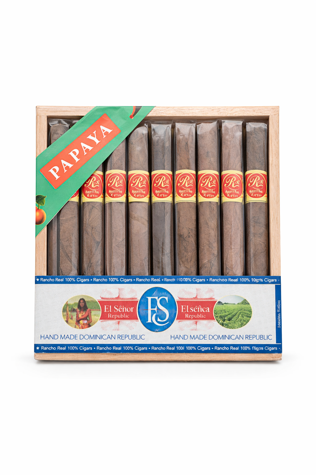 Papaya od Rancho Real Cigars to ręcznie robione cygara z Dominikany, stworzone z myślą o palaczach, którzy cenią łagodny, aromatyczny profil i egzotyczny charakter. Inspiracją dla tej linii są tropikalne nuty papai, które subtelnie łączą się z naturalnym smakiem dominikańskiego tytoniu.